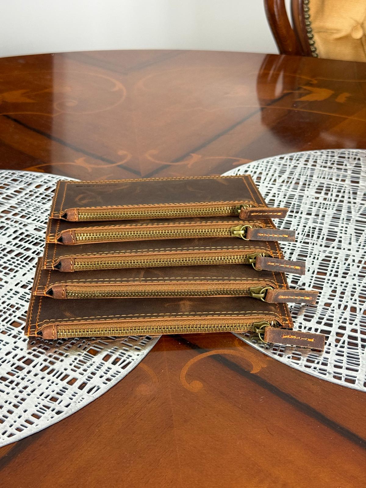 Upgrade your beauty routine with this luxury leather makeup bag and slim brush pouch set, handcrafted from premium waxed and grain leather.