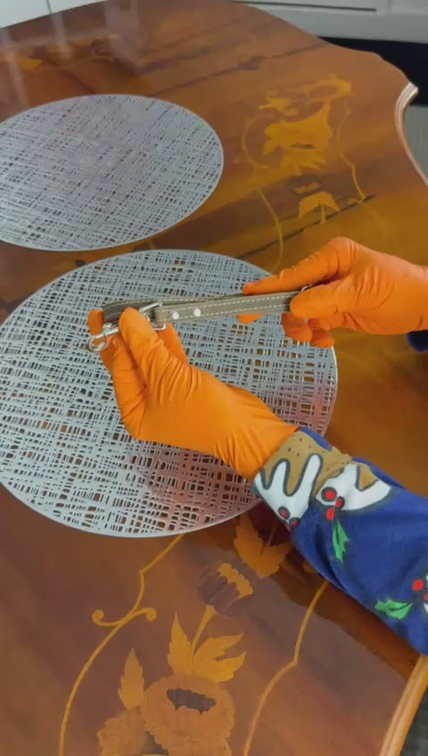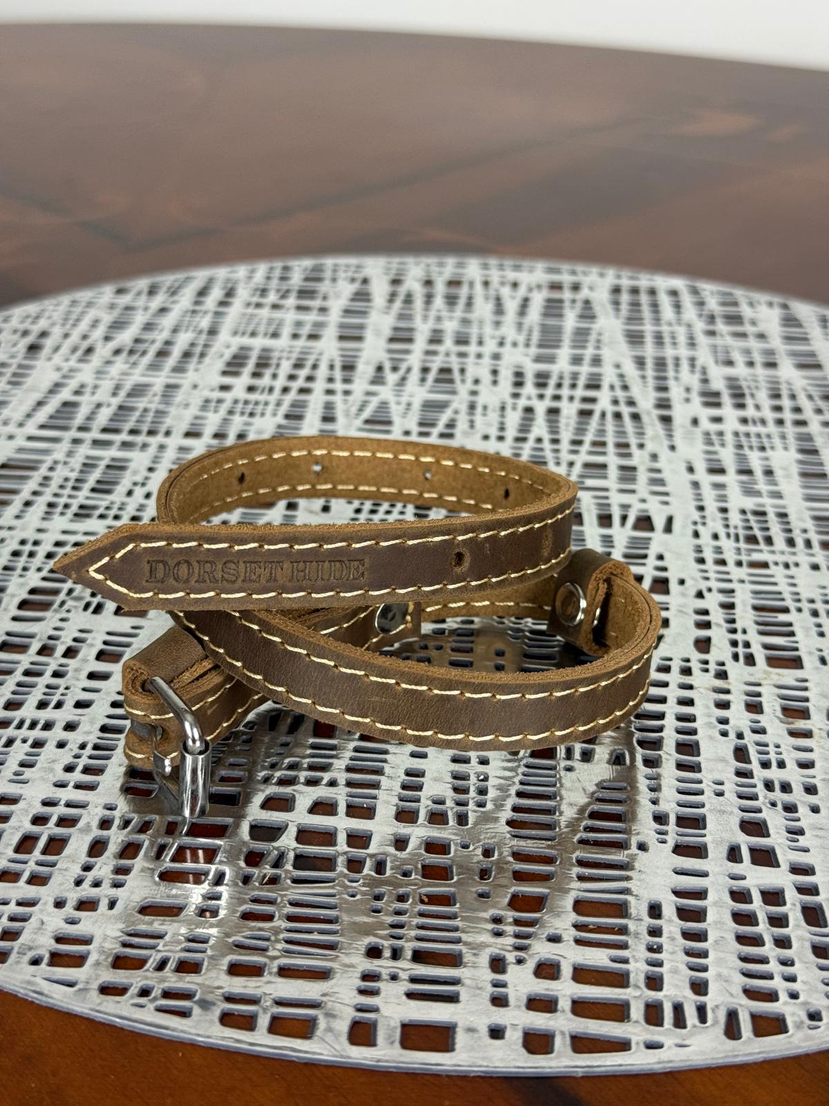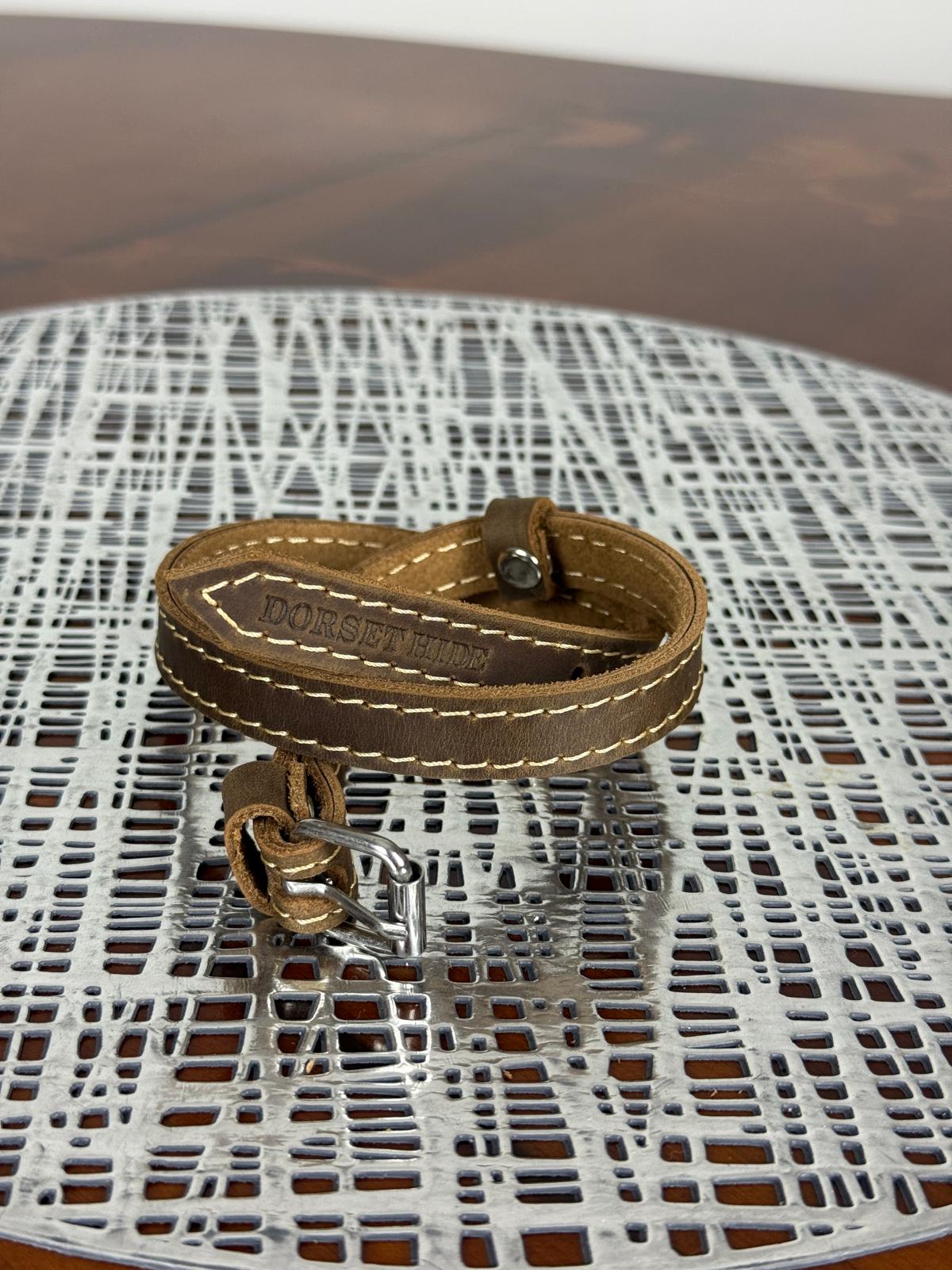 The adjustable leather leash extends up to 6 feet for relaxed walks and can be shortened to 3 feet for better control during training or busy environments. Both the leash and collar feature reinforced stitching on the top for extra strength, ensuring long-lasting reliability.