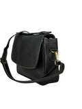The flap closure with a secure magnetic button keeps your essentials safe, while the front open pocket provides quick access to items on the go. Inside, you’ll find a zip pocket for valuables and an open pocket for easy organization.