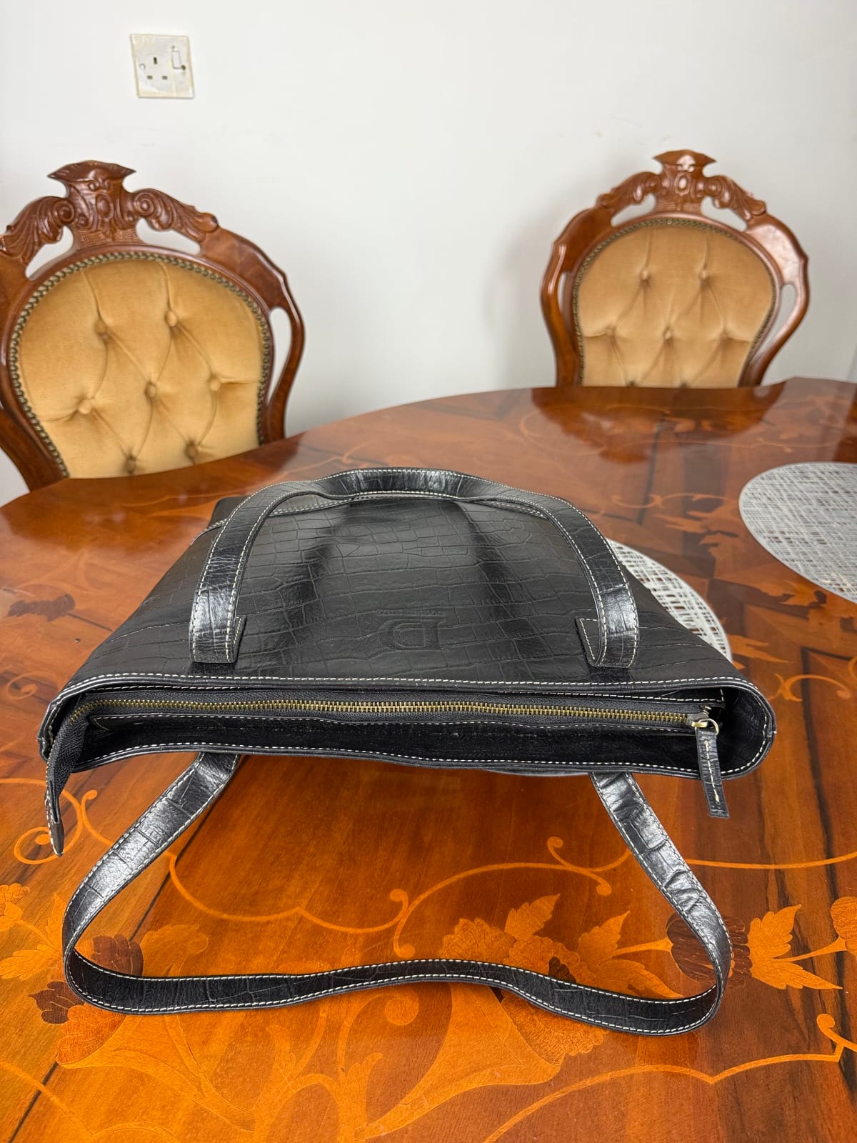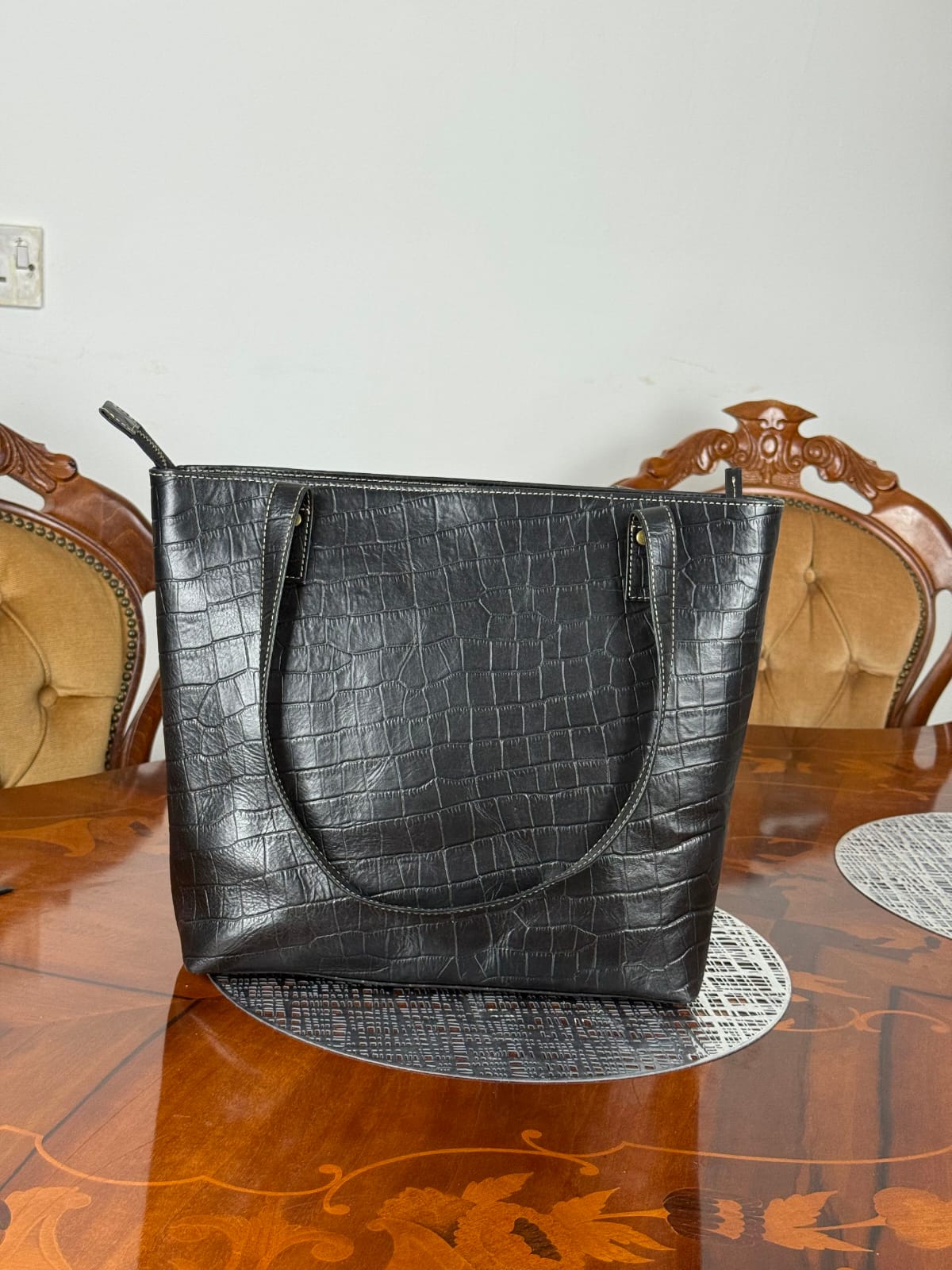 This tote features high quality zip and other accessories and meticulous craftsmanship throughout.