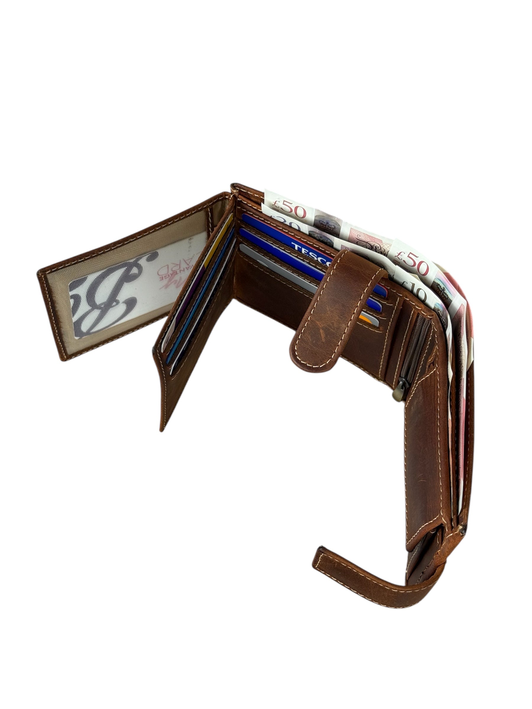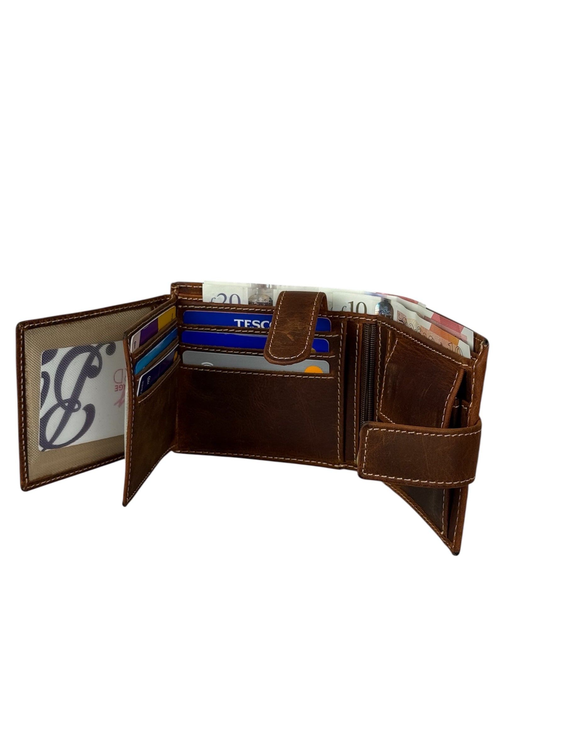Crafted from premium genuine leather, this tri-fold wallet combines timeless style with modern functionality. Measuring 12 x 10.5 cm, it offers a compact design without compromising on storage space.